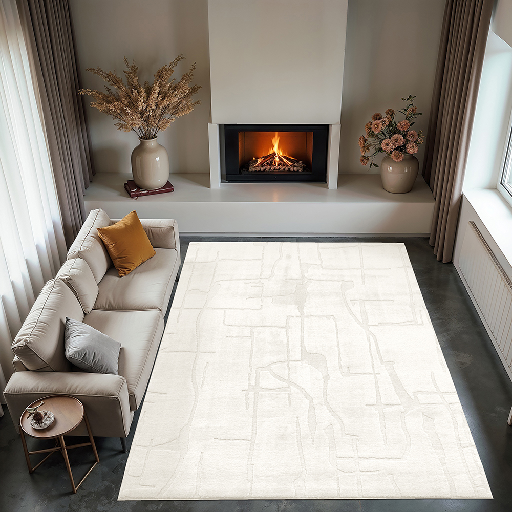 Halı, modern bir desene ve bej rengine sahiptir. Püskül detayları halıya ayrı bir hava katar. Yüksek kaliteli malzemelerden üretilmiş olup, uzun yıllar boyunca ilk günkü görünümünü korur. Dokusu yumuşaktır ve üzerinde yürümek oldukça keyiflidir.
